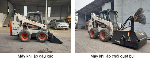 Máy xúc lật Bobcat S450 & quét thổi bụi mặt đường